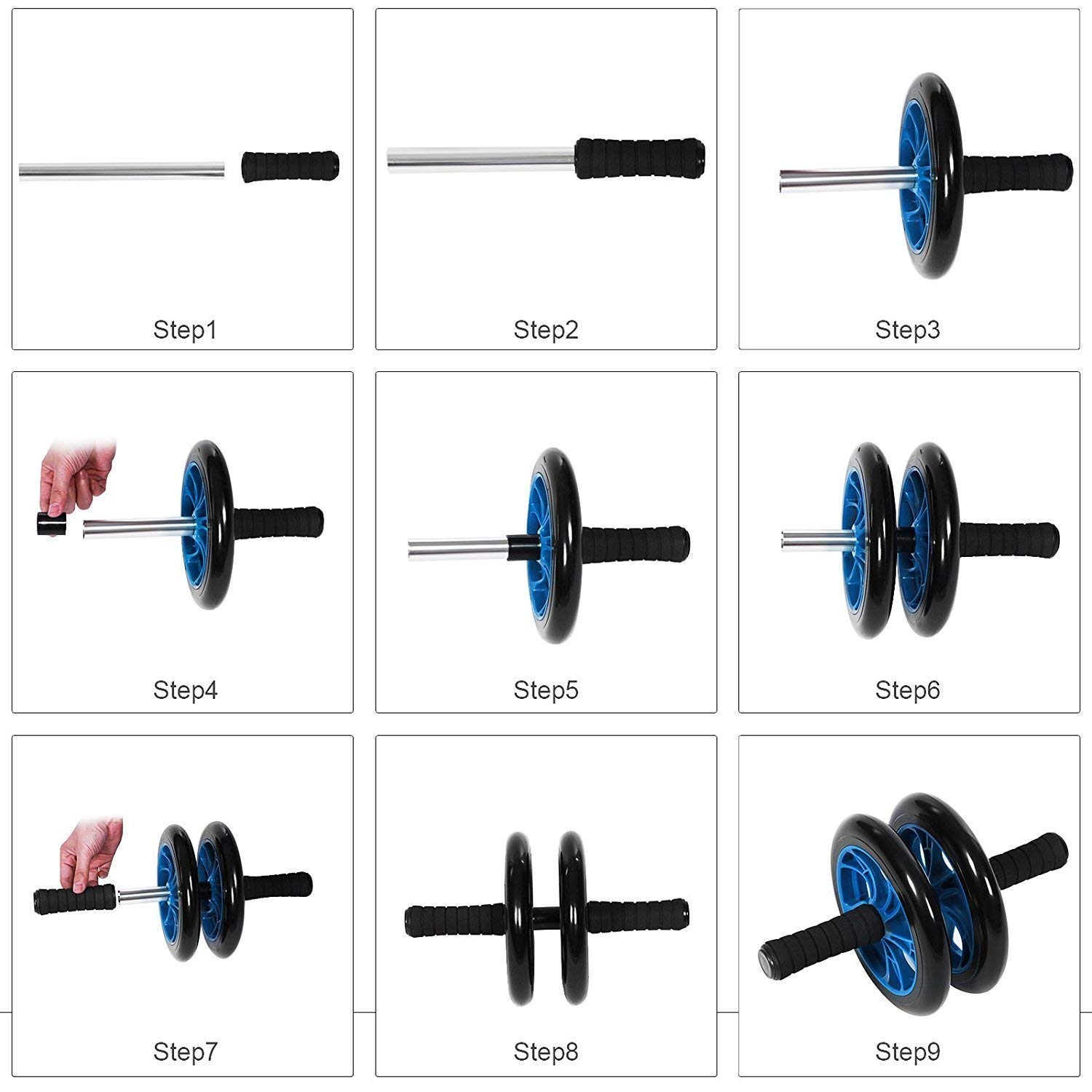 This AB Roller exercise equipment comes with dual wheels for excellent stability. They come independently with the package and give a broader base and more support to you as you stretch out and roll back to exercise and trim your tummy. PVC Wheels fit into the metal bar for more safety and durability. Thick ergonomically designed foam handles have been added to increase grip and overall comfort during workouts and even for prolonged use