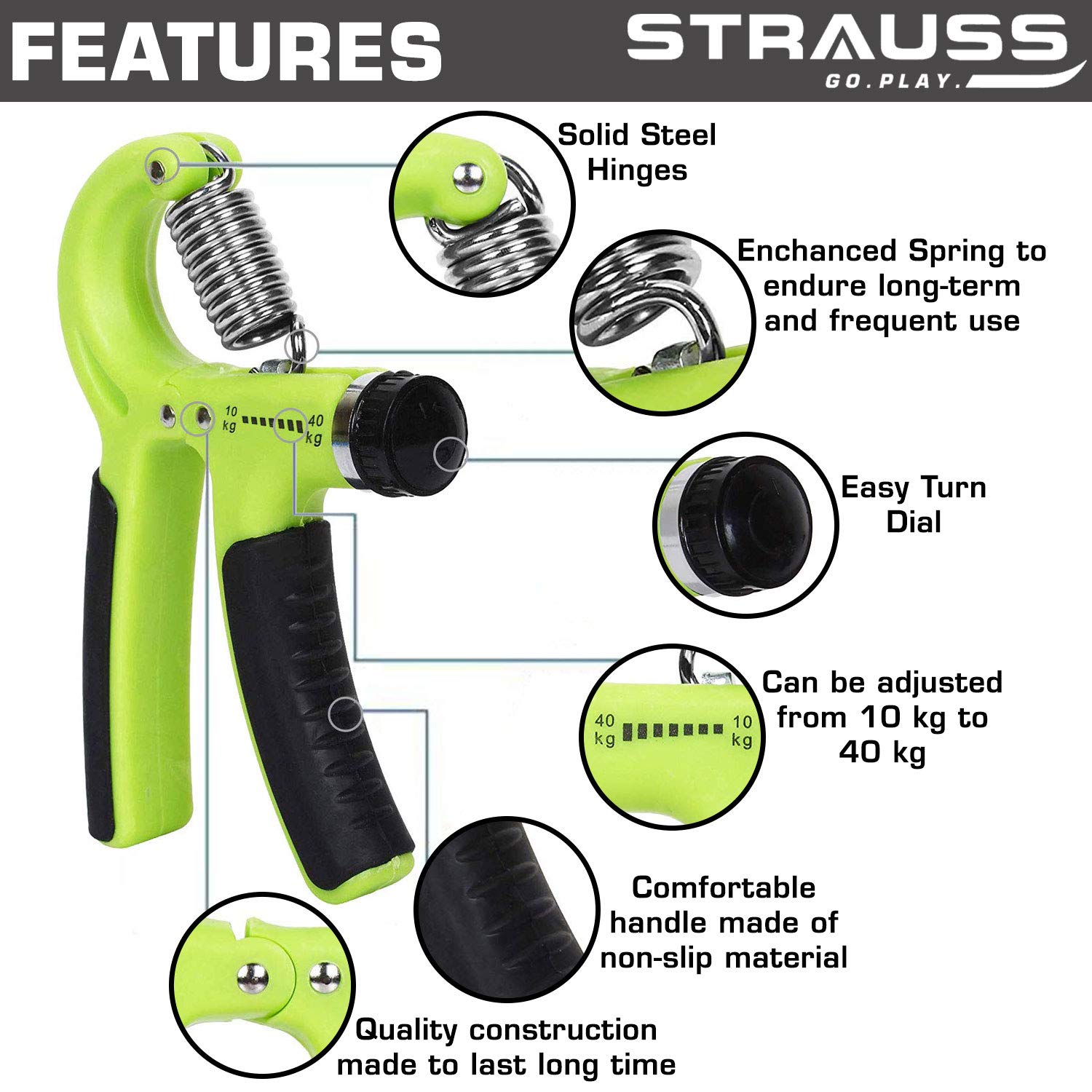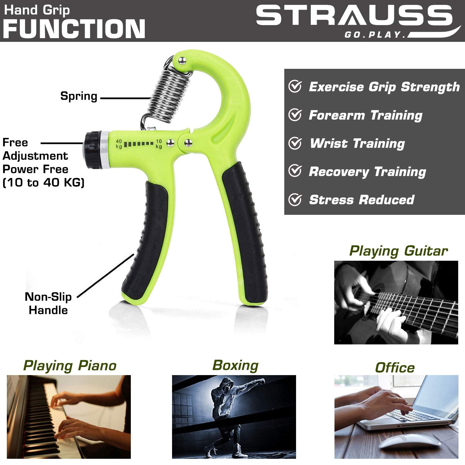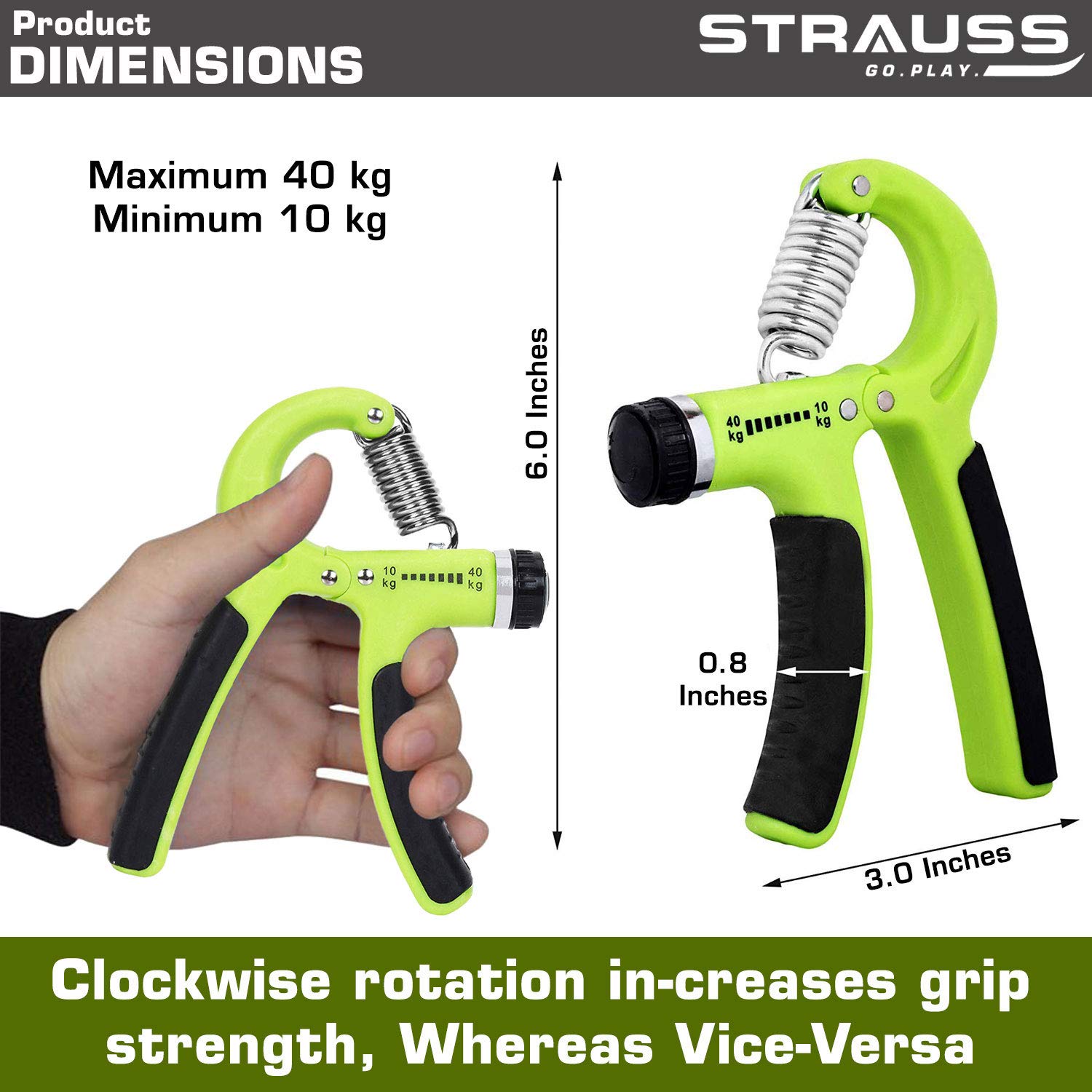 Improved Function, Strength, and Performance Whether your goal is to do more pull-ups, perform heavier deadlifts, play a more competitive tennis game, or climb a mountain, grip strength is crucial. It’s easy to focus on big muscles like back, hamstrings, or shoulders and forget the crucial role of grip strength. Overall strength, muscular development, and athletic performance requires the support of strong forearms, wrists, and hands. Even daily activities like carrying bags and opening jars require a strong grip. The Strauss Hand Grip and Wrist Strengthener is a simple yet effective training tool for overall improved performance... Easy to Use and Beneficial for Anyone