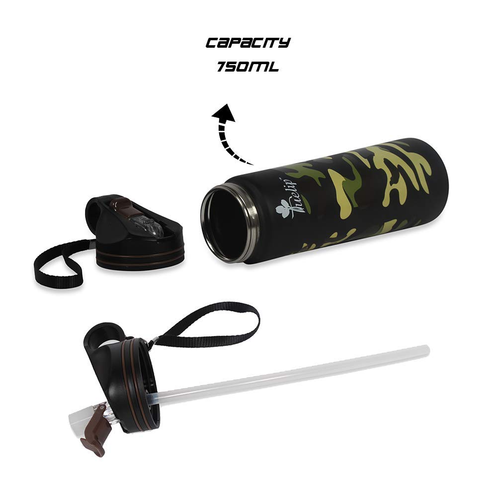 Tuelip Sports Stainless Steel Bottle for School Kids Girls & Boys,College,Gym,Sports 750 Ml (Black)